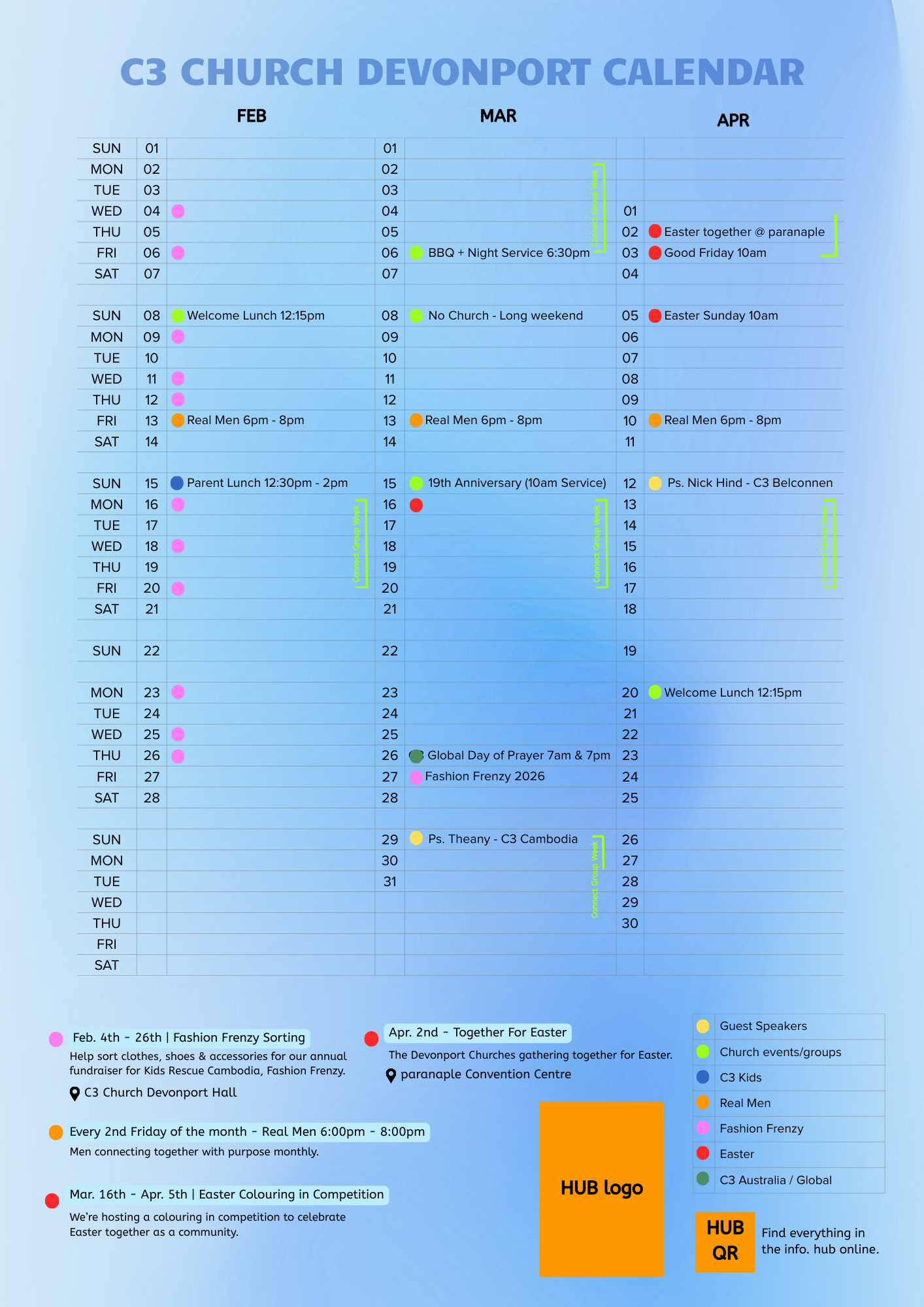 Let’s join together as the C3 movement across the globe in unity & prayer (both meetings run for 1 hour).