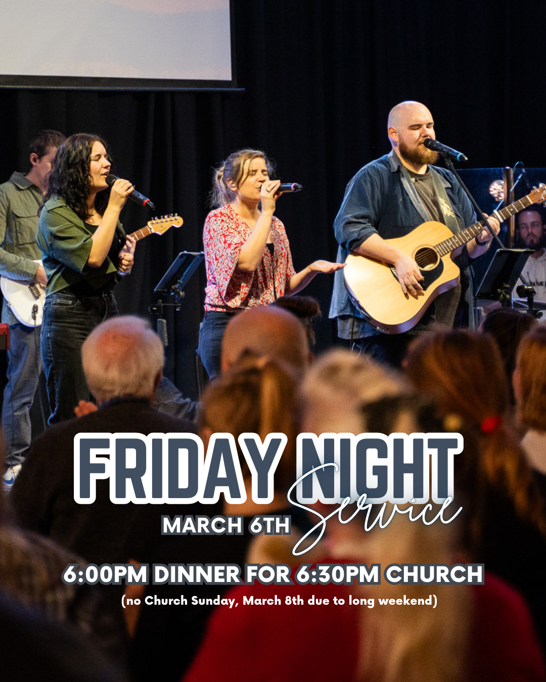 Church is happening on Friday night so we can enjoy the long weekend. Dinner at 6:00pm for Church at 6:30pm.