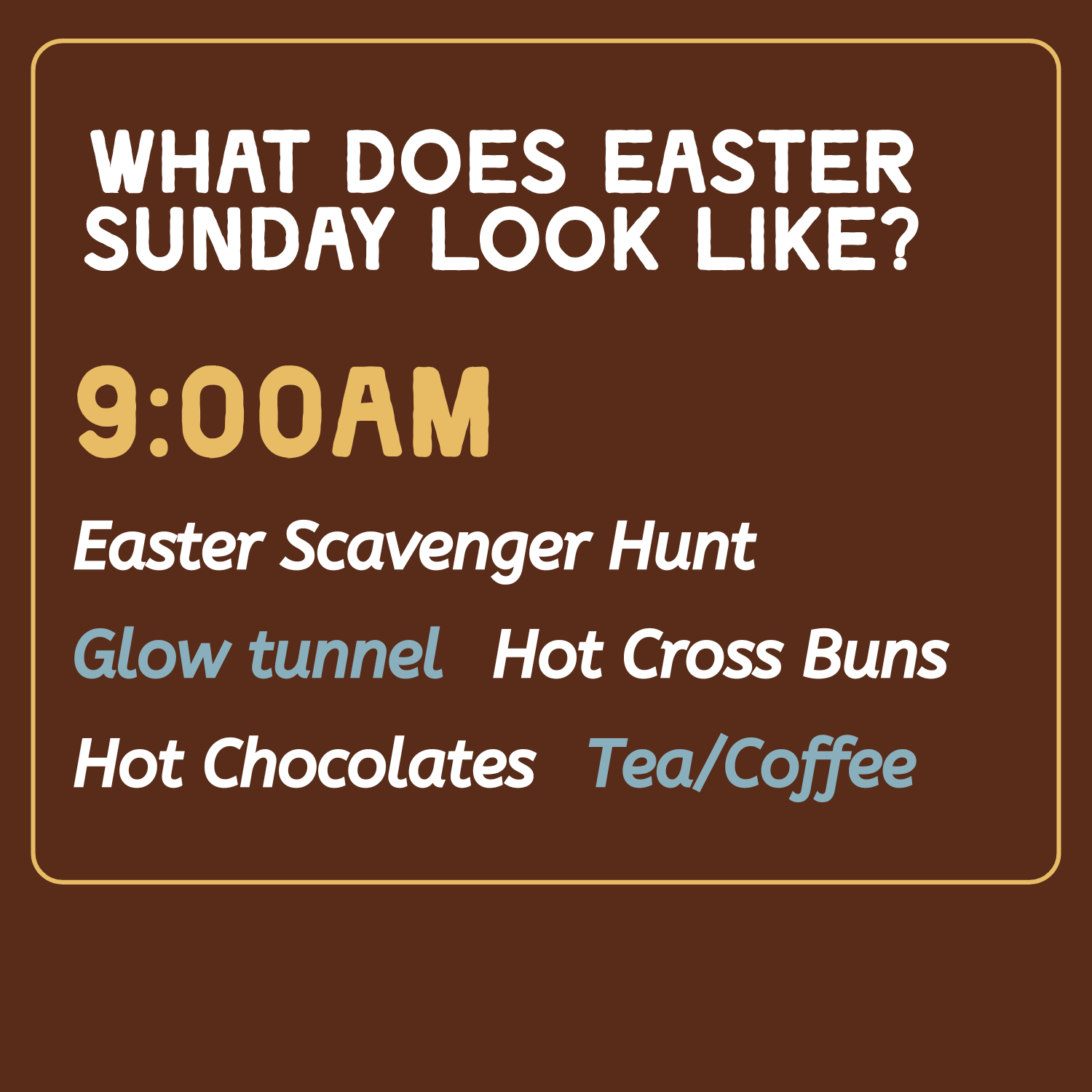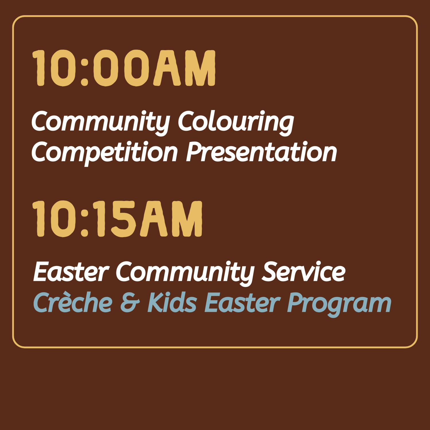 Children can be signed in from 9:30am (after the scavenger hunt) ready for our 10:15am Easter Community Service.